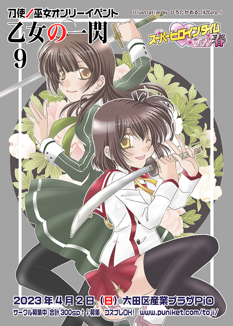 あなたは 参加資格 刀使ノ巫女をこよなく愛し、同人活動をされている方なら、どなたでも参加可能です。 ツイート 乙女の一閃92023年4月2日(日)11:30-15:00 大田区産業プラザPiO開催 直接参加のみMAX合計300↑↓スペース募集予定 即売会終了後におたのしみイベントあり!コスプレOK サークル参加満了御礼 たくさんのお申し込みありがとうございました。 現在までお申し込みの方はすべて当選です(スペースは確保しています) (基本全当選していますが、参加費を送金されていない一部の方は大至急お送りください) 4/2開催 スーパーヒロインタイム2023春サークル配置リスト サークル案内発送しました(3/21)。 「スーパーヒロインタイム2023春」内で合同開催として行われ、入場、及びカタログは共通となります。 合同開催イベントスーパーヒロインタイム2023春 リンクフリーです。バナーはこちら。 ※このHPはWindows版InternetExplorer6(IE6)とFireFox(Modzilla)にて動作確認を行っております。 |